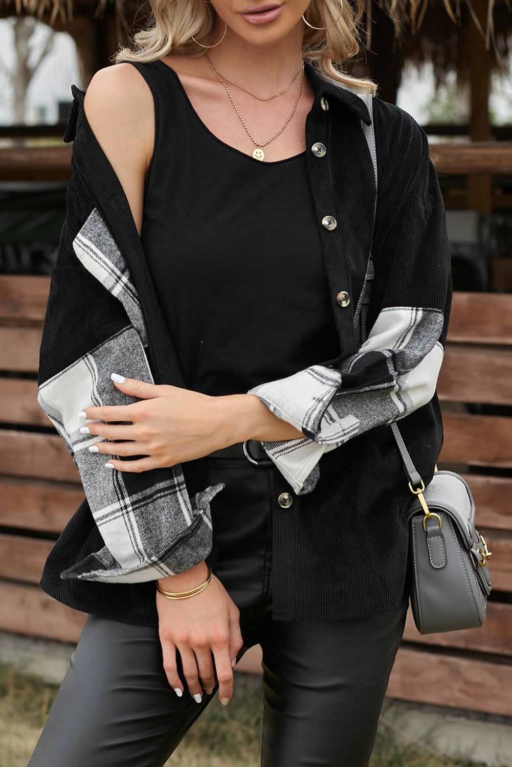 The jacket with the plaid splicing makes the wearer shine in the crowd