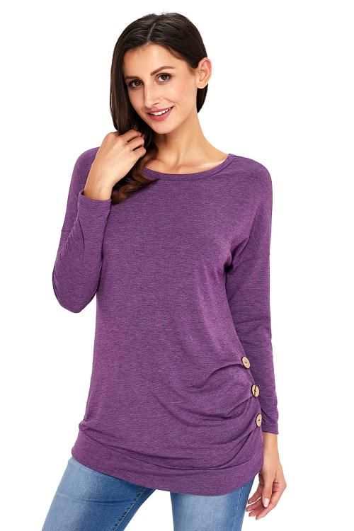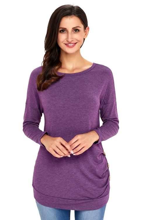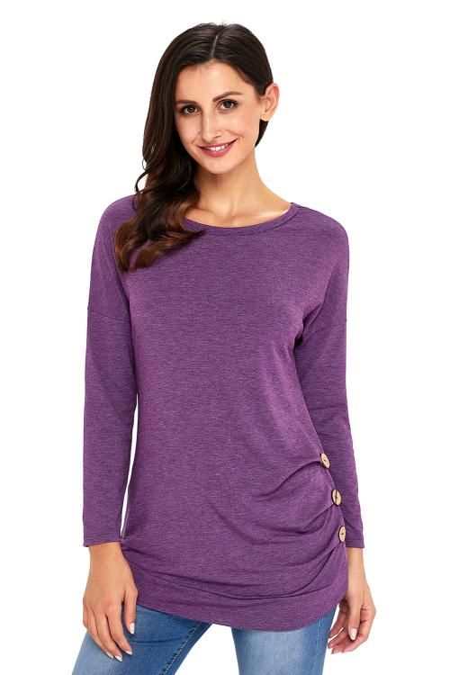 This beautiful tunic is such an essential for your fall wardrobe - you're sure to love wearing it all season long! Featuring soft heather material that feels like your favorite vintage tee, you'll love the feel of this! The large brown buttons on the side are the perfect accent - paired with the ruching, it makes such a trendy detail! This tunic also features a scoopneck, comfortably stretchy material, and a rounded hemline! Features