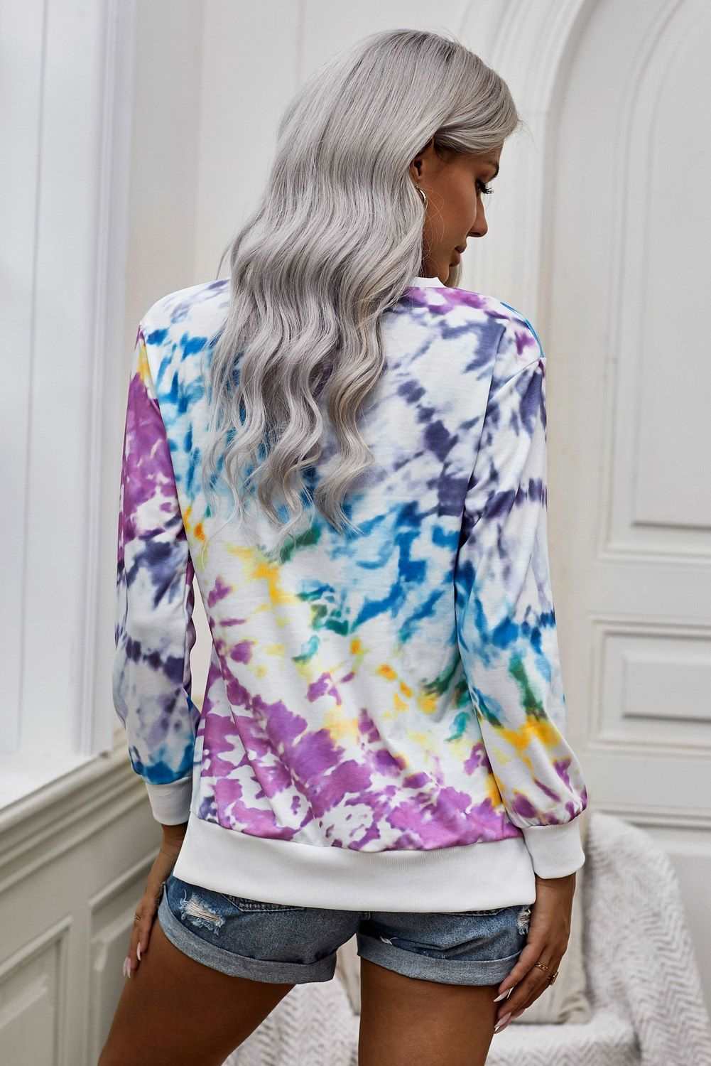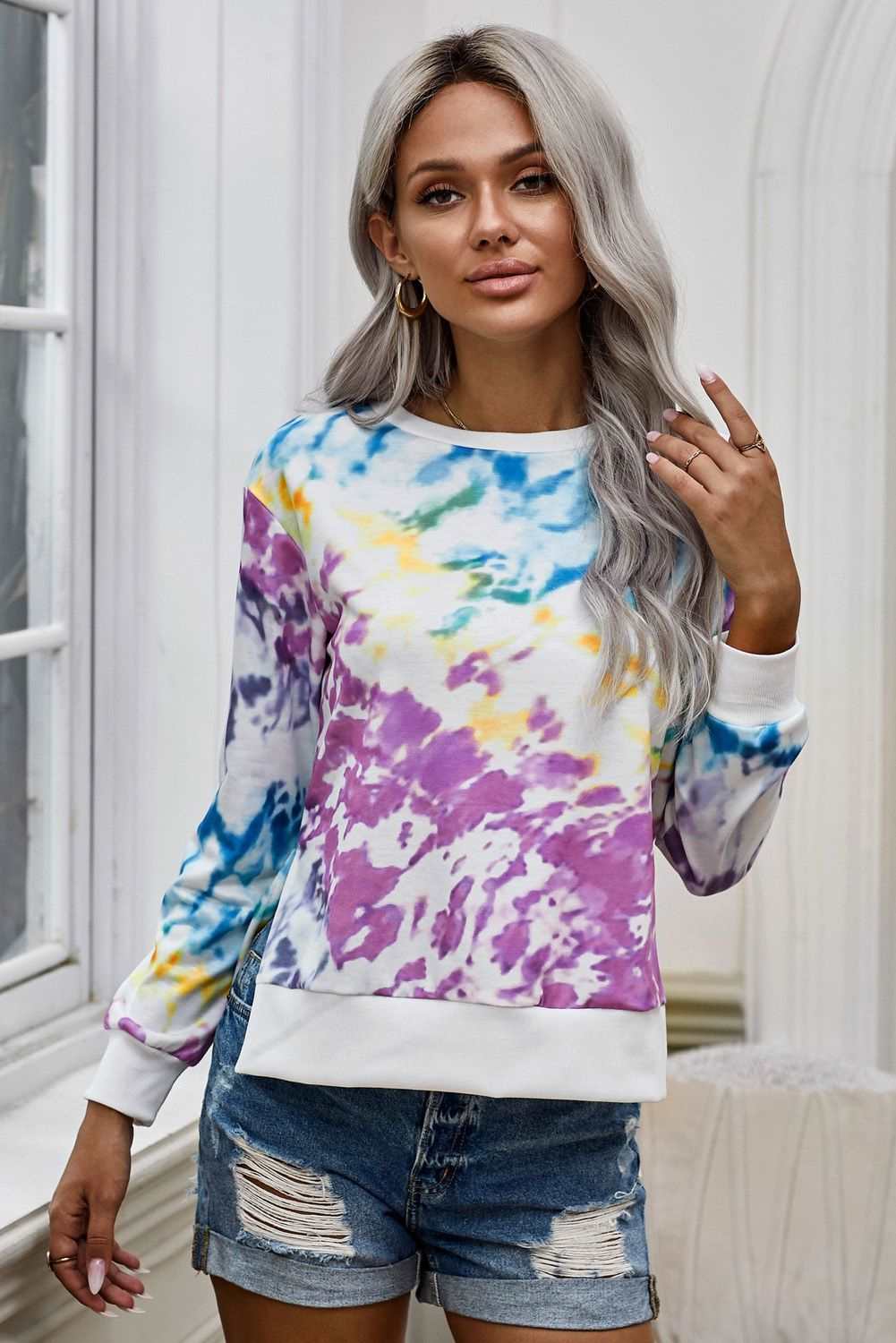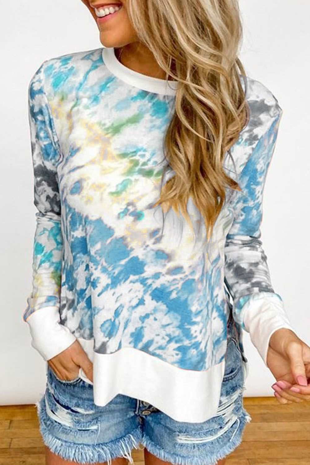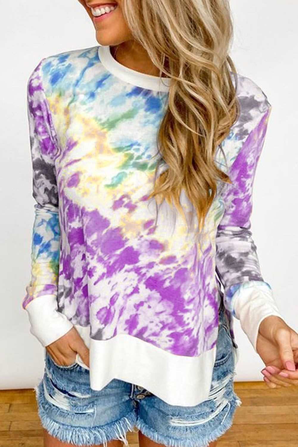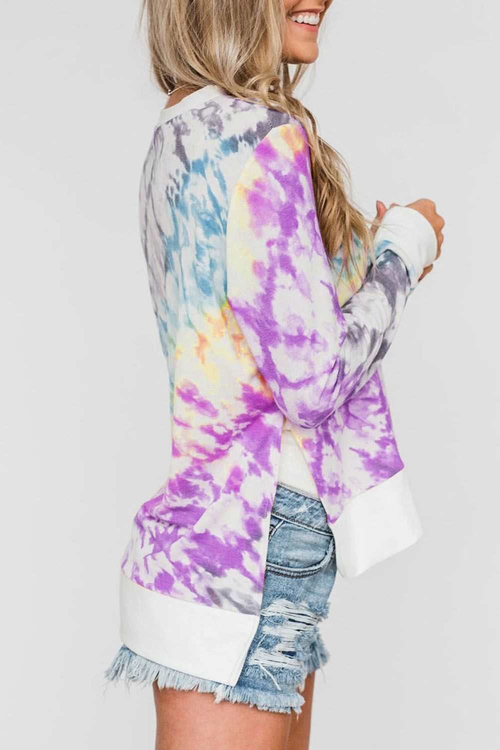 Catch eyes by our this tie-dye long sleeve top It has a pullover round neckline, long sleeve People love its regular fit shape which is perfect most High low hemline finished with double slits on sides Long sleeve tops of the latest fashion styles