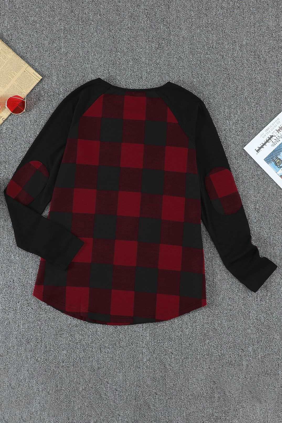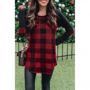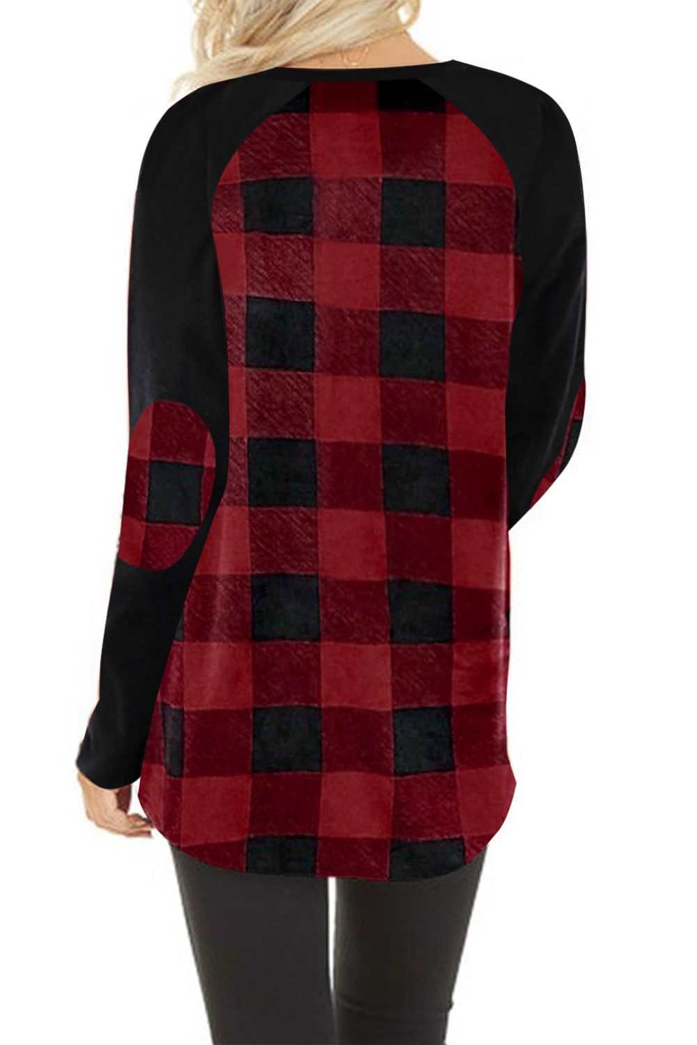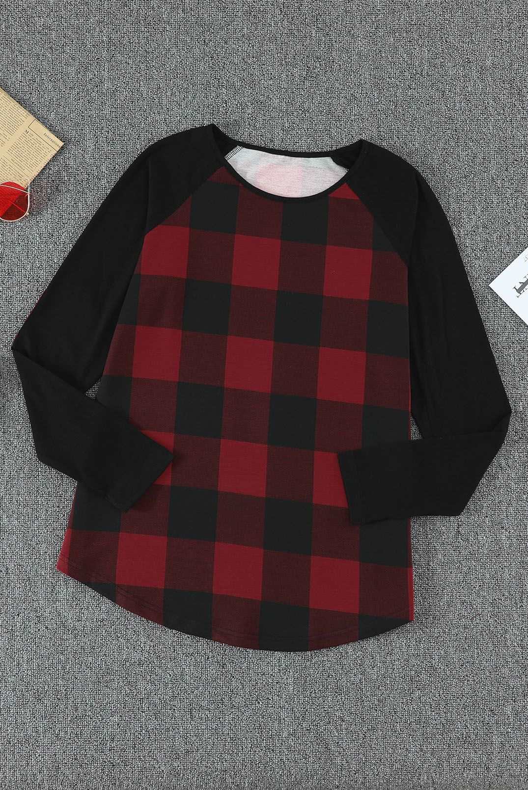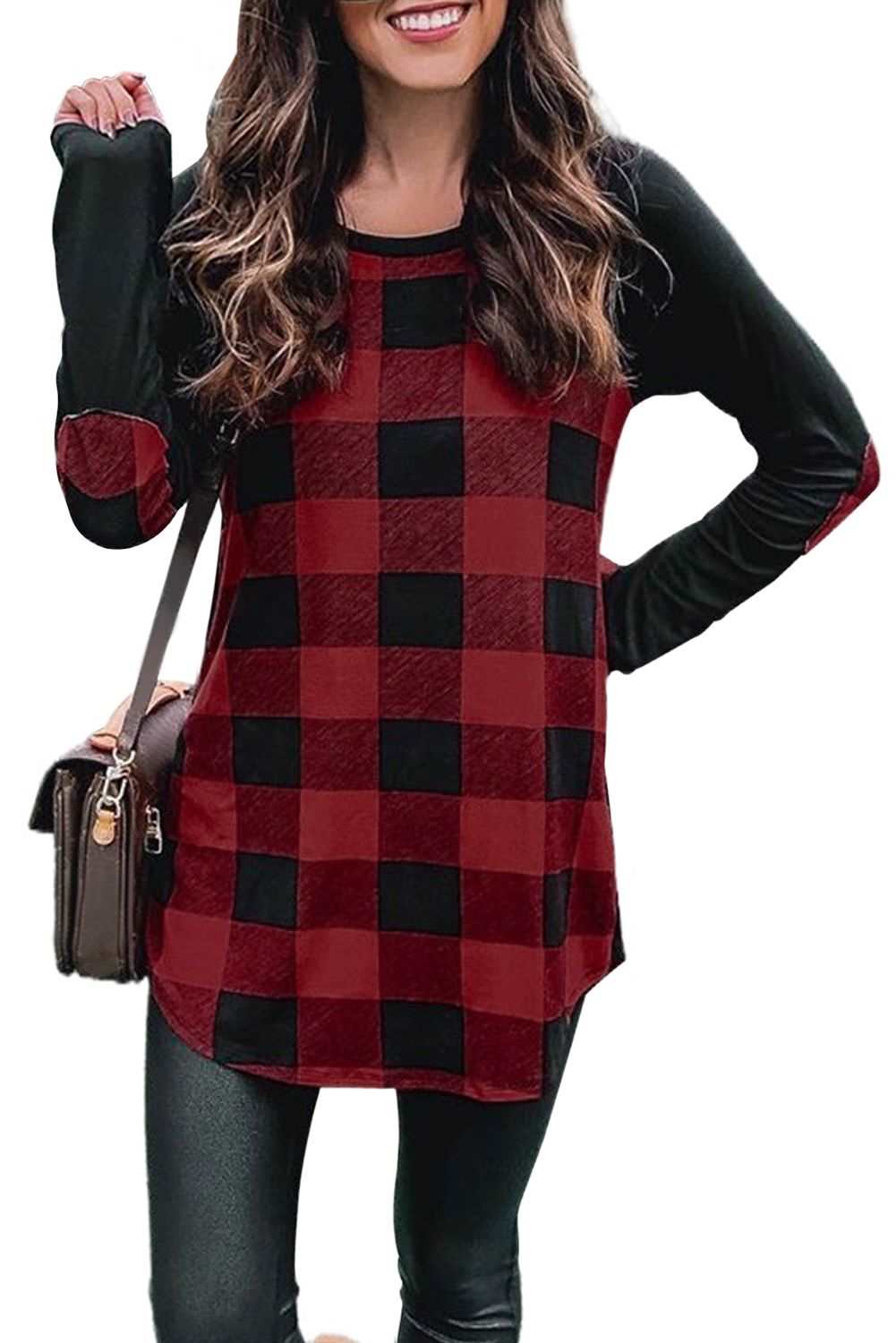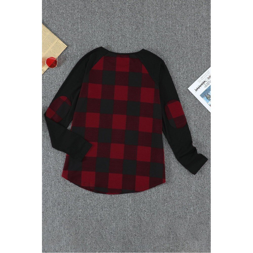 Red buffalo plaid and black long sleeves make up this stylish top