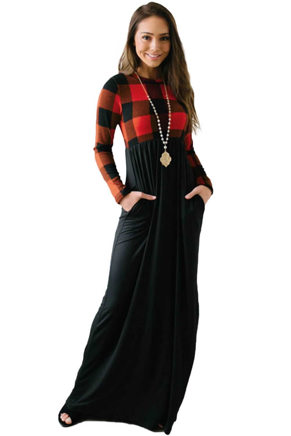 Long sleeve buffalo bodice patchworks with high waist maxi skirt
